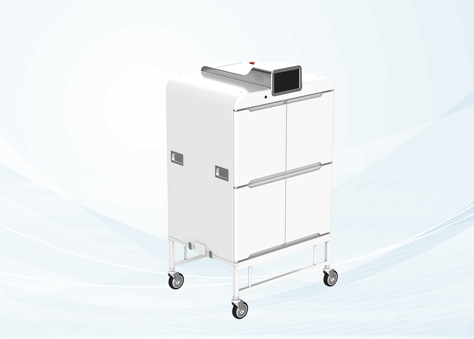 智能貨柜采用多柜門、大容量設計,每個箱體均具有獨立權限,是集智慧物聯、智能調度管理等功能于一體的可移動智能柜體,可與醫院HIS、SPD等系列軟件平臺融合使用,自動對接C系列分體式配送機器人,實現藥品、器械、餐食等物資的多站點信息化配送,以及醫療廢棄物的智能化管理。
